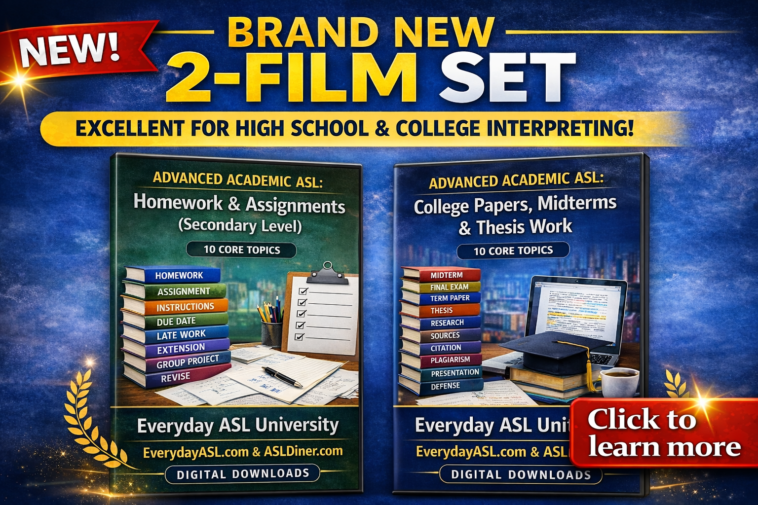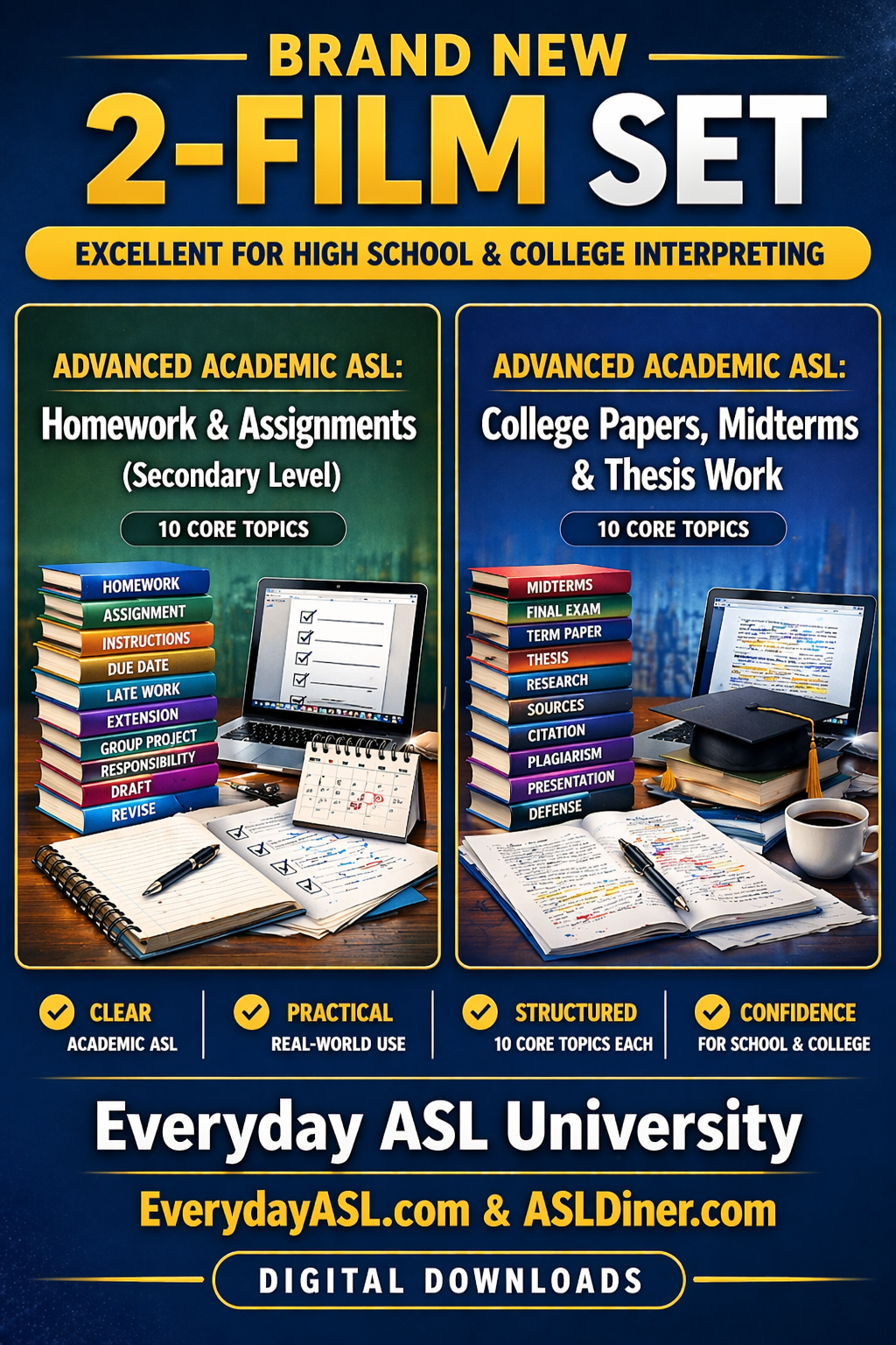 NEW! Advanced Academic ASL: 2-Film Set - Homework & College Papers - DIGITAL DOWNLOADS